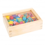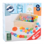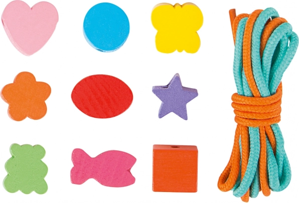 Små skabere kan nyde timer af sjov med dette træperlesæt. Boksen indeholder 81 farverige perler og 2 snore, der giver børn mulighed for at lave forskellige smykker efter deres fantasi.