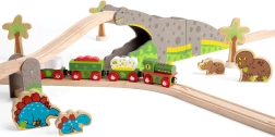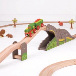 Giv børnene et originalt element til deres togbaner – en dinosaurbro, der forvandler hver tur til et eventyr. Den robuste trækonstruktion med dinosaurmotiv lader togene køre over ryggen og gennem tunnellen, hvilket øger banernes variation og understøtter kreativ leg.