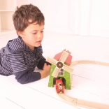 Den trævindmølle fra Bigjigs Rail forvandler enhver bane til et stilfuldt hjørne af bondegården. Børn kan køre gennem tunnellen i møllen og sætte vingerne i gang – en leg, der naturligt støtter hånd-øje-koordination og kreativ historiefortælling. Det robuste trædesign og de klare farver indbyder til leg igen og igen.