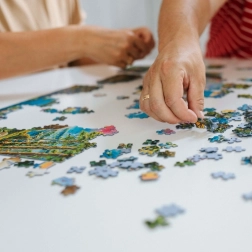Puslespil er lavet af papkarton med kalandreret papir og miljøvenlige fødevarefarver.