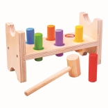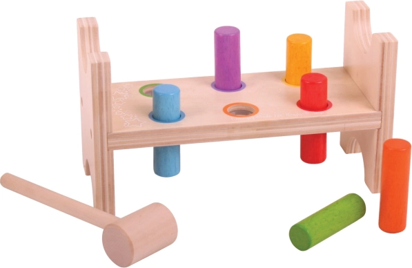 En sjov og sikker træhammerbænk til de mindste, der udvikler hånd-øje-koordination og finmotorik. Med farvestrålende tapper og en robust trækølle træner børn både præcision og grebsstyrke. Legetøjet har afrundede kanter, er lavet af kvalitetstræ og opfylder europæiske sikkerhedsstandarder.