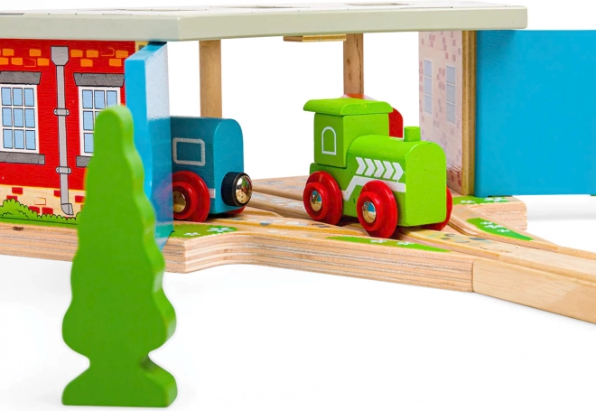 Depotet er fuldt kompatibelt med de fleste almindelige træsystemer, så du nemt kan integrere det i din eksisterende verden af skinner. Leg med depotet udvikler fantasi, finmotorik og koordination.