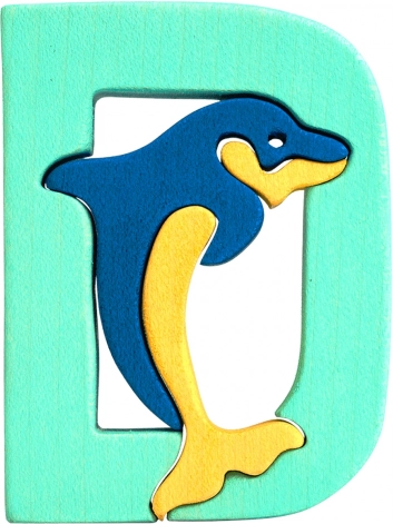 Delfinmotivet og formen på bogstavet D inviterer børn til leg og leder dem naturligt til at genkende bogstaver og danne ord.