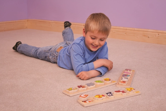 Fremmer udvikling af færdigheder og koncentration, da hvert massive træpuslespil er tilstrækkeligt stort til, at små hænder nemt kan håndtere det. Bigjigs puslespil indeholder: