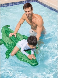 Den oppustelige krokodille fra INTEX er et fantastisk vandlegetøj til børn fra 3 år. Takket være det stærke håndtag giver den stabilitet og tryghed, mens holdbart PVC (0,25 mm) sikrer lang levetid selv ved hyppig brug. Det realistiske design vil glæde små svømmere og støtte aktiv leg i vandet.