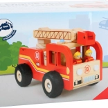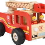 Denne træbrandbil begejstrer små redningsfolk med realistiske detaljer og en solid konstruktion. Den drejelige og udtrækkelige stige gør det muligt at nå selv svært tilgængelige steder, mens de letkørende hjul sørger for en glidende tur gennem værelset. To brandmandsfigurer med hjelme giver historierne den rette spænding og fantasi.