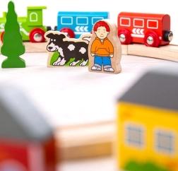 Oplev magien ved de første togture med denne farverige trætogbane fra BIGJIGS RAIL. Sættet indeholder 19 dele, inklusive lokomotiv, vogne, magnetiske koblinger og tilbehør som huse, træer og figurer. Velegnet til børn fra 3 år og understøtter fantasi, finmotorik og koordination. Fremstillet af kvalitetsmaterialer, der er ansvarligt indvundet, og kompatibel med de fleste trætogbaner på markedet.