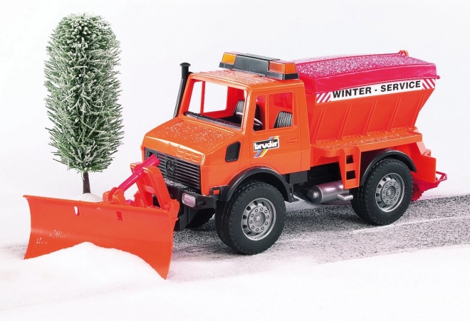 Mercedes-Benz Unimog fra BRUDER er en robust saltspreder med plov designet til vinterarbejde. Takket være den præcise udførelse får børnene en realistisk legeoplevelse – fra rydning af sne til saltning af kørebanen. Den forreste leddelte aksel sikrer fremragende manøvredygtighed, og ploven er ikke kun drejelig, men også let at afmontere.