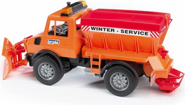 Spredeanlægget til grus eller salt er funktionelt – under kørsel roterer propellerne, som simulerer udspredning af materiale. Ladet har et opklappeligt låg for nem adgang. Modellen er lavet af holdbar kvalitetsplast og udmærker sig ved mange detaljer, som understøtter kreativ og realistisk leg.