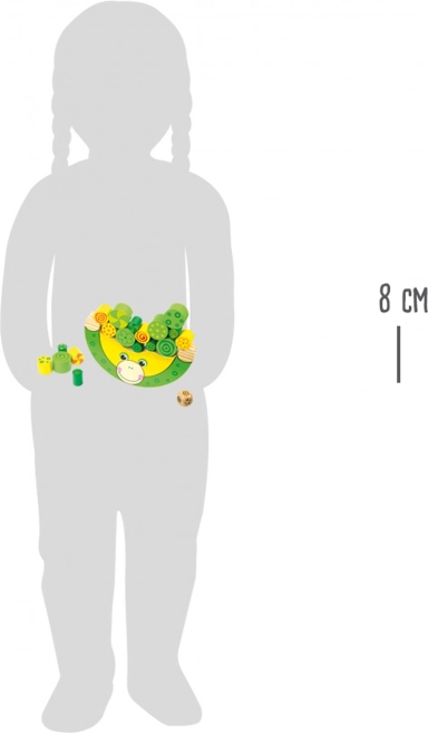 Et sjovt træ-balance spil med en frø for børn fra 3 år, der udvikler finmotorik, logisk tænkning, tålmodighed og øje–hånd-koordination. Farvede cylindre placeres på den vippende base efter farven, som terningen viser – en fantastisk familieaktivitet for 1–4 spillere. Fremstillet af 100% FSC-certificeret træ.