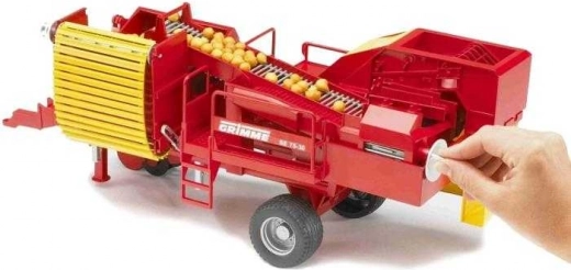 Detaljeret kartoffelhøster Grimme SE 75 fra Bruder med realistiske funktioner, egnet til børn fra 3 år.