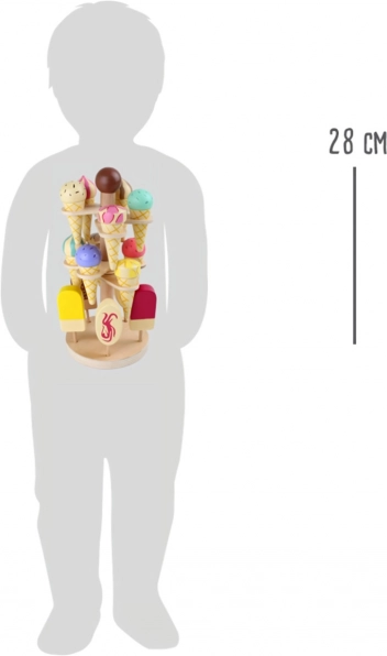 Small Foot isbod i træ opfordrer børn til kreativ leg og hjælper dem samtidig med at udvikle kognitive og kommunikative færdigheder. Dette farverige sæt har tre etager med ti is og fem ispinde, som kan placeres i runde huller eller sættes i standerens sokkel.