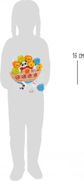 Børn træner præcision og koordination ved at stable dyrene på den vippende båd uden at miste balancen.