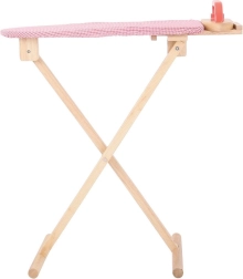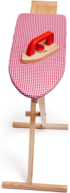Vores træstrygbræt med strygejern er ideelt til små hjælpere, der ønsker at efterligne strygning for forældre eller bare pynte legen med dukker. Med et smukt rødhvidt ternet betræk på brættet og en realistisk træstrygejern kan børnene få masser af glæde af realistisk leg.