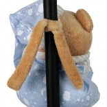 Bamsen har en blå pyjamas med stjerne- og månemønster, der skaber en beroligende atmosfære og er den ideelle ledsager i børneværelset.