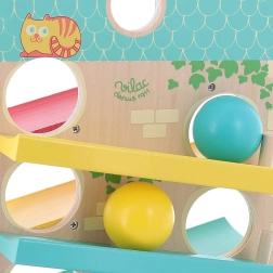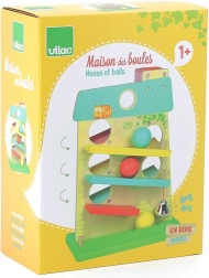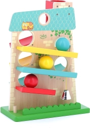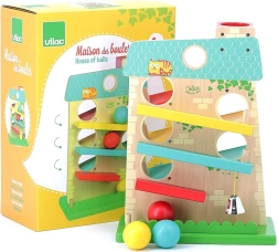 Det træbaserede kaskadehus fra VILAC begejstrer små børn med den sjove kuglebane og det charmerende design. Det tilbyder 3 ramper på begge sider, hvor trækuglerne ruller oppefra og ned og ved målet ringer en lille metal-klokke. Legetøjet i pastelfarver udvikler finmotorik og logisk tænkning og giver timevis af glæde.