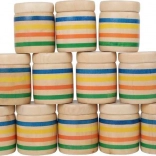 12 trædåser med farvede striber giver et æstetisk og samtidig praktisk spil, der er holdbart og langtidsholdbart.