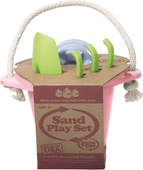 Pink sandsæt fra Green Toys til miljøbevidste forældre. Fremstillet af genbrugsplast, sikkert og holdbart.