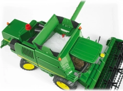 Modellen er fremstillet af højkvalitets og holdbar plast, så den egner sig til både indendørs og udendørs brug. Åbnbare døre, udklappelige spejle, drejelige trin til kabinen og en arm med funktionel snegl til udtømning af “korn” giver en maksimalt realistisk oplevelse.