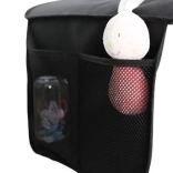 Underlaget fastgøres nemt med elastiske stropper, der monteres på hovedstøtten. Det har også to netlommer, der gør det nemt at opbevare småting som legetøj eller flasker. Disse lommer er praktiske og giver hurtig adgang til de gemte ting.
