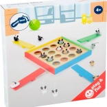 Lille og sjovt træspil, der kombinerer spænding, færdighed og strategi. Velegnet til børn fra 4 år. Farverige mus og fire gynger venter på dit præcise skud.