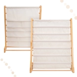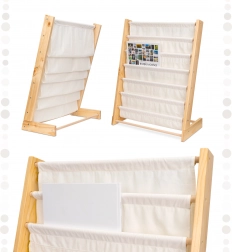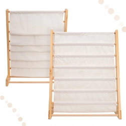 Elegant og praktisk bogreol i træ bliver nemt en del af ethvert børneværelse. Den tilbyder op til 6 stofhylder, der giver rigelig plads til bøger, malebøger og andre nødvendigheder til dit barn. Reolens højde er 76,5 cm, hvilket gør det muligt for barnet at nå alle hylder uden problemer.