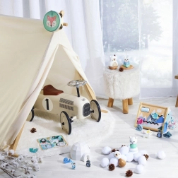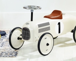 Takket være de gummibelagte hjul er kørslen stille selv på hårde underlag, så løbecyklen egner sig både til lejlighed og på fortov. Det retro design skiller sig ud på hvert børneværelse og stimulerer fantasi og glæden ved bevægelse.