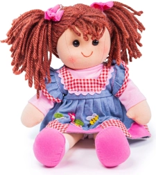 Den store dukke Melody fra Bigjigs Toys tilbyder mange muligheder for børns udvikling. Med sine klare farver og bløde krop bliver hun en uundværlig ledsager i leg og samtidig støtter udviklingen af finmotorik og børns evne til at hjælpe og drage omsorg.