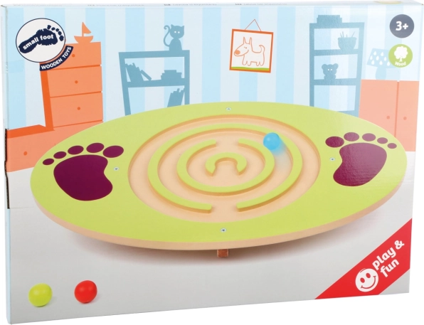 Balancebrættet er lavet af certificeret, naturligt træ og tilbyder en økologisk og holdbar konstruktion. Børn kan stå på platformen og forsøge at balancere, mens de leder den farvede kugle gennem den udskårne labyrint. Denne engagerende leg stimulerer konkurrence og udvikling af centrale motoriske færdigheder.