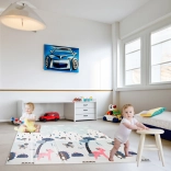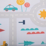 Opdag en multifunktionel måtte, der nemt kan erstatte et tæppe i børneværelset og samtidig være dekorativ. Måtten er lavet af kvalitetskum, beskytter mod kulde og dæmper stød. Med sit dobbeltsidede design med skovs- og gademotiv er den ideel til små opdagelsesrejsende.