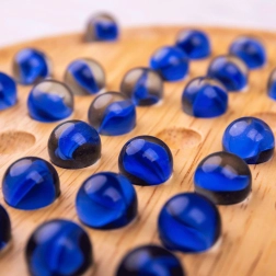 Den runde plade af glat træ og de blanke glaskugler giver en behagelig spilleoplevelse og lang holdbarhed.