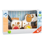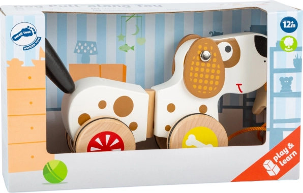 Denne trækhund i træ er designet som den ideelle ledsager for små børn under deres leg og udforskning af verden. Den er fremstillet af træ i høj kvalitet, og det farverige design fanger ethvert barns opmærksomhed.