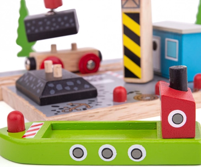 Oplev havnens magi med denne attraktive legetøj fra Bigjigs Rail til børn. Sættet gør det muligt for børn interaktivt at overføre last fra vogn til båd ved hjælp af en magnetisk kran: