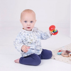 • Understøtter sanseudvikling: visuelle kontraster og en behagelig raslen stimulerer både syn og hørelse.