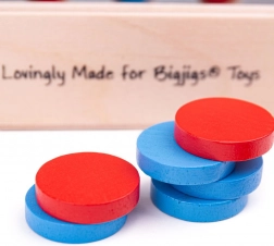 Den massive trækvalitet føles behagelig at røre ved og tåler daglig brug. Jetonernes overflade er behandlet med ikke‑giftige farver og lakker, og produktet lever op til aktuelle europæiske sikkerhedsstandarder, så det er ideelt til børneværelser og legehjørner.