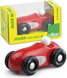 Den lille sportsvogn fra Vilac er et elegant indslag på børneværelset og i voksnes samlinger. Lakeret træ i en klar rød farve og gummihjul sikrer holdbarhed, stabilitet og glidende kørsel på forskellige overflader.