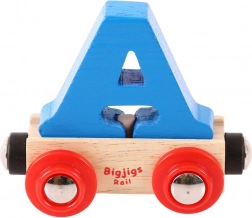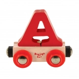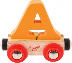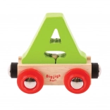 Trævognen til togbane med bogstavet A tilbyder børn en sjov og samtidig lærerig oplevelse. Hvert bogstav kan tages af og udskiftes med andre elementer, hvilket gør den velegnet til at skabe personlige navnesæt eller ord.