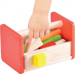 Sættet er fremstillet af holdbart massivt træ og træplast, hvilket sikrer lang levetid og sikker leg. Den attraktive kombination af naturligt udtryk og mættede farver tiltaler ethvert barns øjne. Børn lærer at sortere værktøj efter formål, og den kompakte konstruktion sparer samtidig plads.
