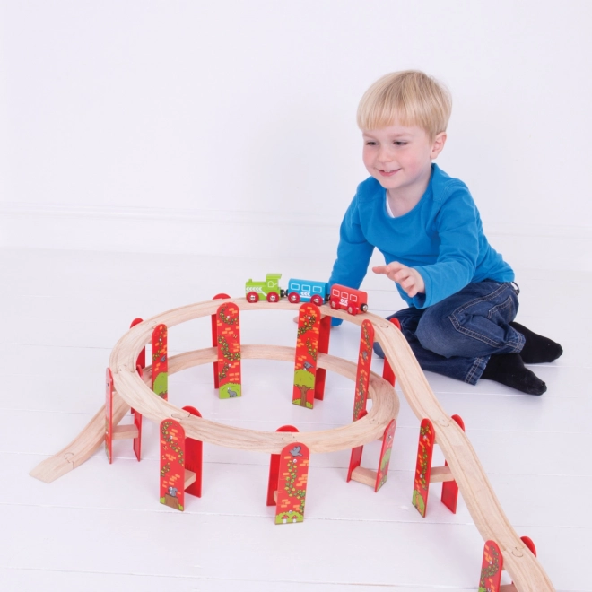 Vi præsenterer Bigjigs Rail fleretagers træbane byggesæt – ideel til at fremme børns kreativitet og motoriske færdigheder. Takket være kvalitetsmaterialer, som er ansvarligt udvalgt, lover dette sæt timer af sjov og er kompatibelt med alle andre trætogbaner på markedet.