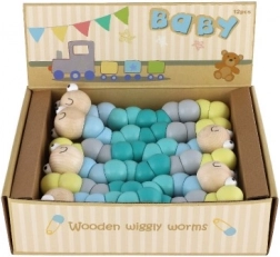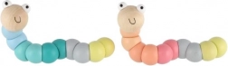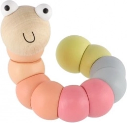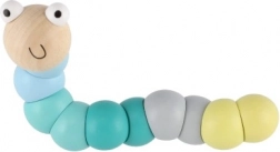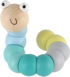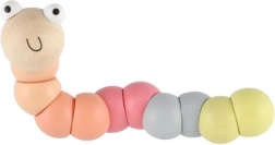 Denne træorm/larve består af glatte, farvede segmenter, der hænger sammen og gør det let at bøje den i forskellige former. Med de behagelige pastelfarver og det smilende ansigt vil børn hurtigt få den som favorit. Ideel til sjov leg og en blid udvikling af finmotorik og kreativitet.