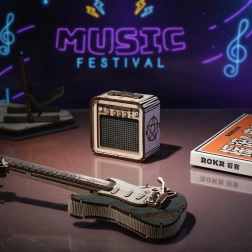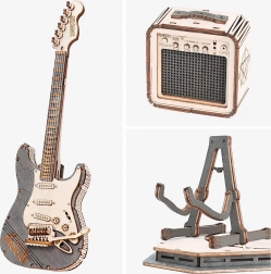 Dette træ 3D-puslespil af en elektrisk guitar vil glæde alle elskere af musik og elegante dekorationer. Modellen er designet til udstilling – uden bevægelige dele, med et rent, naturligt udseende og præcist udskårne detaljer, der skiller sig ud i enhver indretning.