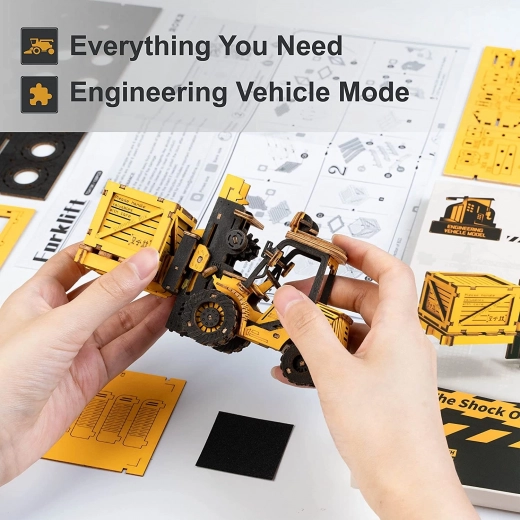 Dette byggesæt inden for materialehåndtering tager dig ind i en verden af kraftfulde maskiner og smarte mekanismer. Træ-3D-puslespillet af en gaffeltruck består af 139 laserkærede dele, som danner en detaljeret model med bevægelige dele. Bygningen er intuitiv og, takket være den medfølgende vejledning, håndterbar selv for begyndere.