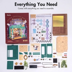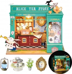 Oplev en miniatureverden fuld af fantasi – den grønne tebutik med motiver af den hvide kanin, lommeure og et skakternet gulv skaber stemningen af europæisk eftermiddagste. Når LED‑belysningen tændes, bliver modellen til en fortryllende dekoration med hyggelig aftenstemning.