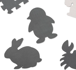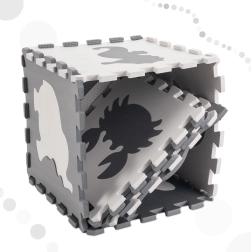 EVA-materialet er elastisk, stødabsorberende og samtidig meget let at vedligeholde – tør blot af med en fugtig klud. Delene passer præcist sammen, så montering og afmontering klares på et øjeblik. Det stilrene design fungerer desuden som et dekorativt element i børneværelset.