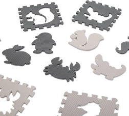 Store skumpuslespil med dyr er ideelle til de første skridt og til leg hver dag. Af de enkelte dele samler du nemt en legemåtte eller afgrænser en zone til barnet. De udtagelige former understøtter genkendelse af former, finmotorik og logisk tænkning. Kontrastfarver og en let struktureret overflade stimulerer syn og følesans.