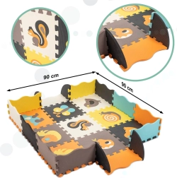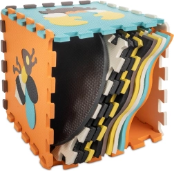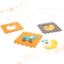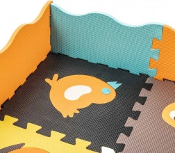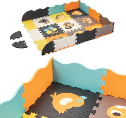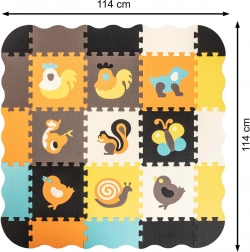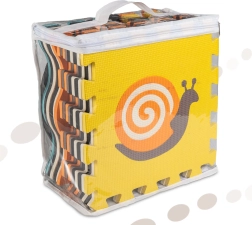 Denne store skummåtte består af 25 dele (9 hovedbrikker med udtagelige dyrefigurer og 16 kantstykker). Den grovere overfladestruktur og de kontrastfulde farver stimulerer naturligt syn og følesans. Det bløde EVA-skum dæmper fald ved de første skridt og beskytter mod kulde fra gulvet.