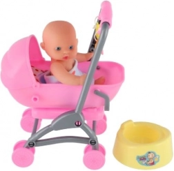 Er du interesseret i at underholde din lille plejer? Dette lege sæt med barnevogn og baby er det perfekte valg til at udvikle barnets fantasi og rollespil. Barnevognen er farverig og legesyg, og babyen har et yndigt udseende, hvilket øger realismen af legen.