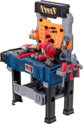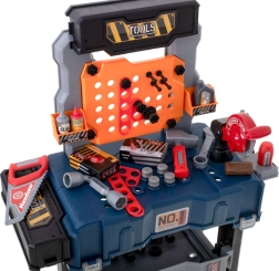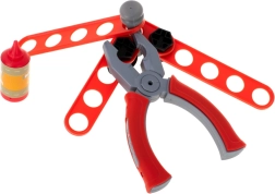 Indeholder skruer, møtrikker, søm, sav, nøgler, skruetrækker, hammer, tang og forbindelsesstykker – alt til realistisk og kreativ leg.