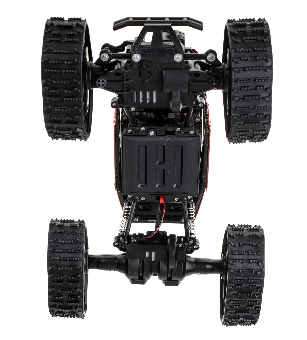 Få actionfyldt kørsel med RC rock crawler i skala 1:16, designet til krævende terræn. Den robuste konstruktion, kvalitetsstøddæmpere og valget mellem gummihjul og gummibælter garanterer sjov på enhver overflade – fra haven til stenede stier.