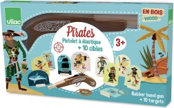 Træpiratpistol fra mærket Vilac er det ideelle legetøj for små entusiaster af pirat-eventyr. Det giver børn mulighed for at øve sig i skydning på mål ved hjælp af sikre elastikker, som er inkluderet i pakken.